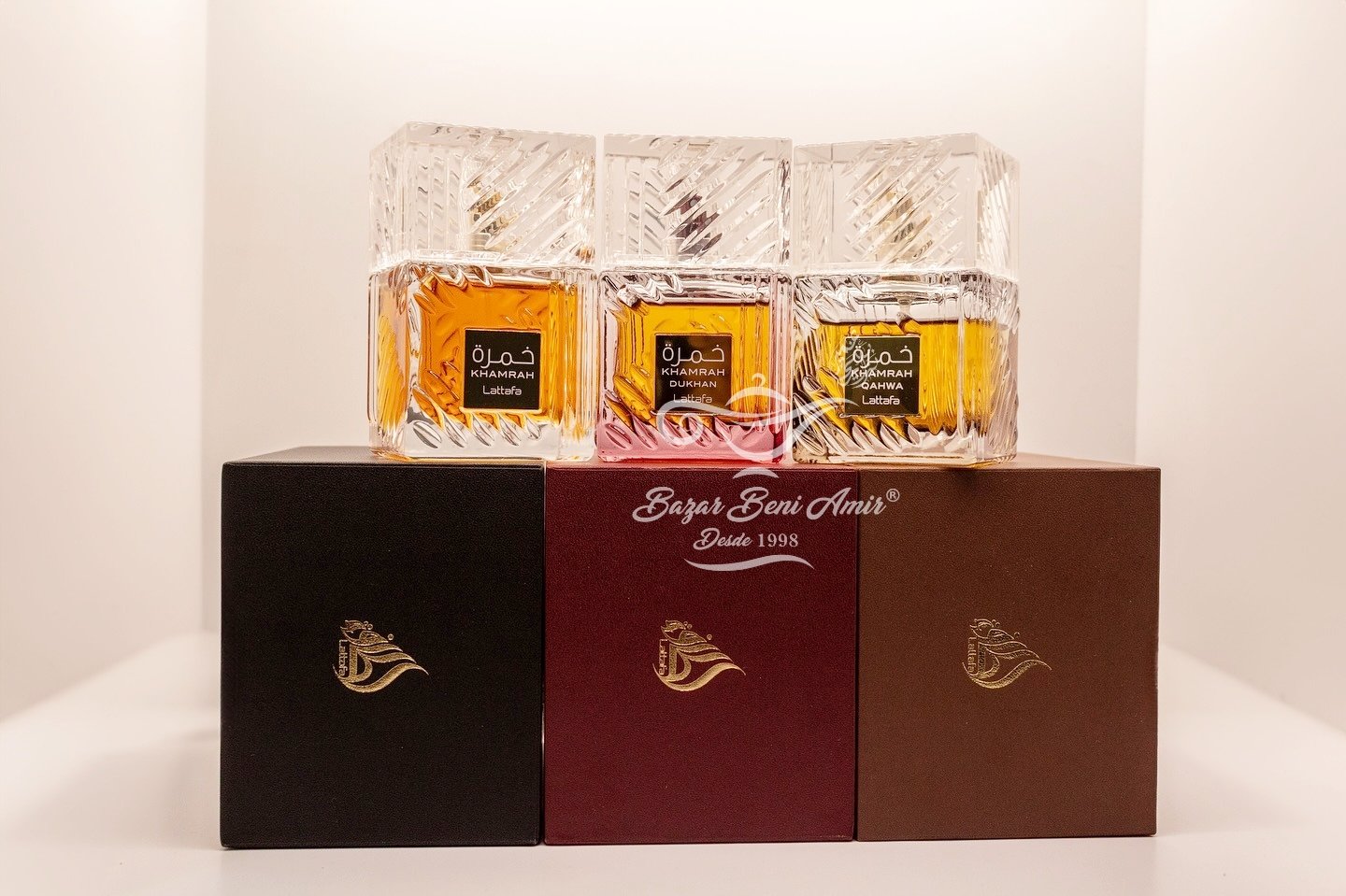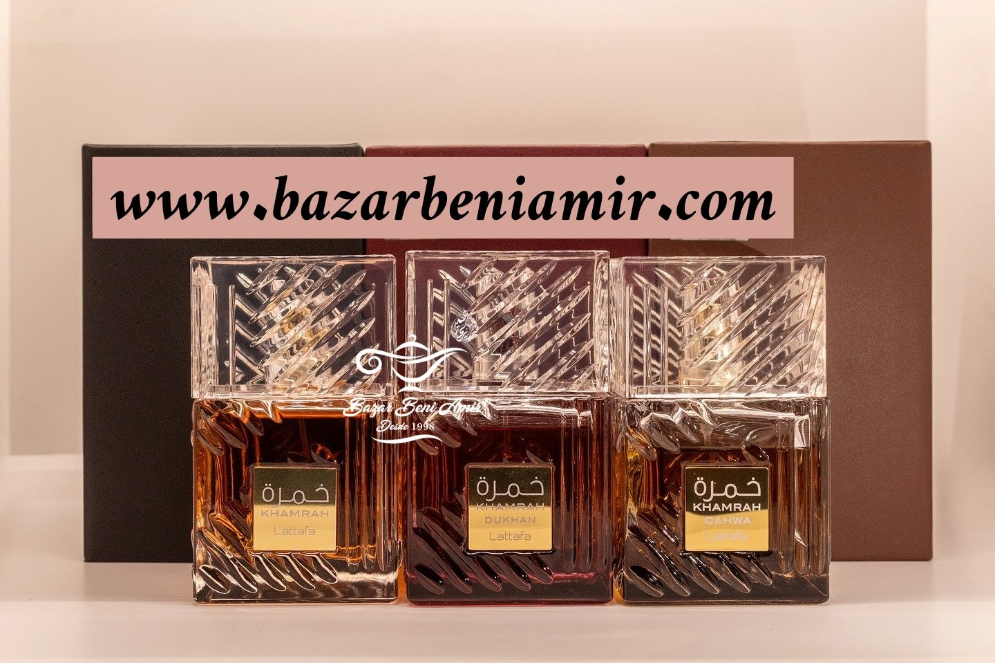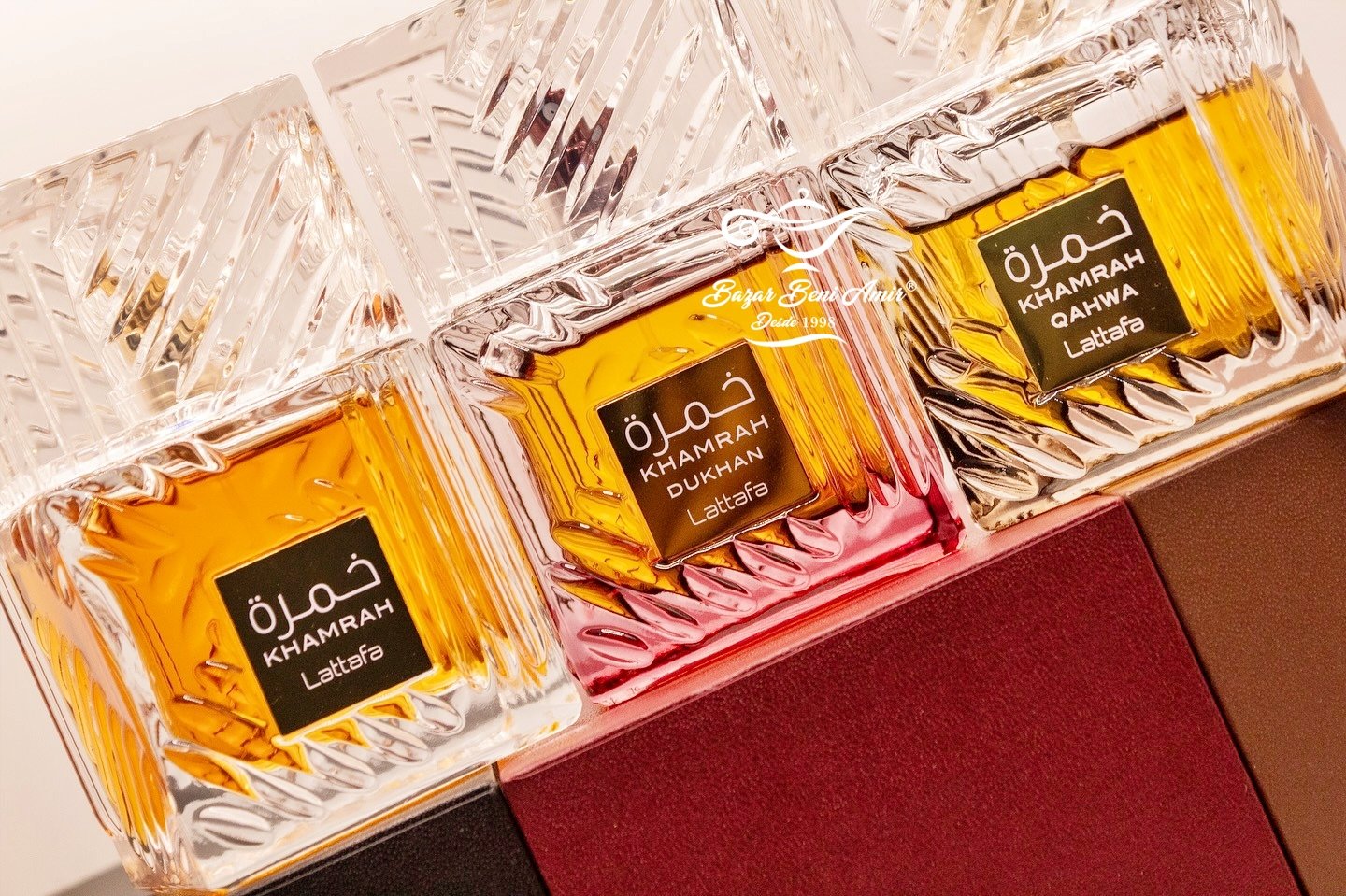 Sumérgete en el lujo y la sofisticación de la perfumería árabe con la exclusiva Colección Khamrah de Lattafa. Tres fragancias unisex que destacan por su intensidad, duración y elegancia, creadas para quienes desean dejar huella con su aroma.