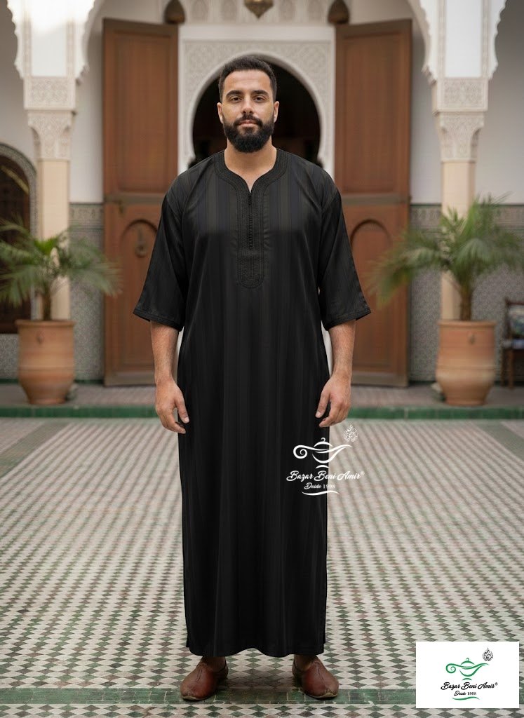 Gandora o chilaba tela jawhara جوهرة de hombre típica en Marruecos de media manga de tela Johara, con un bolsillo en la zona derecha y una apertura en la zona izquierda para tener acceso al bolsillo del pantalón que se lleve debajo.