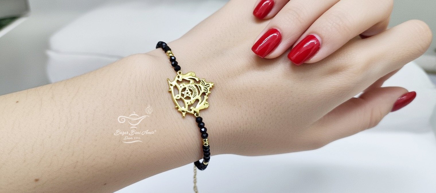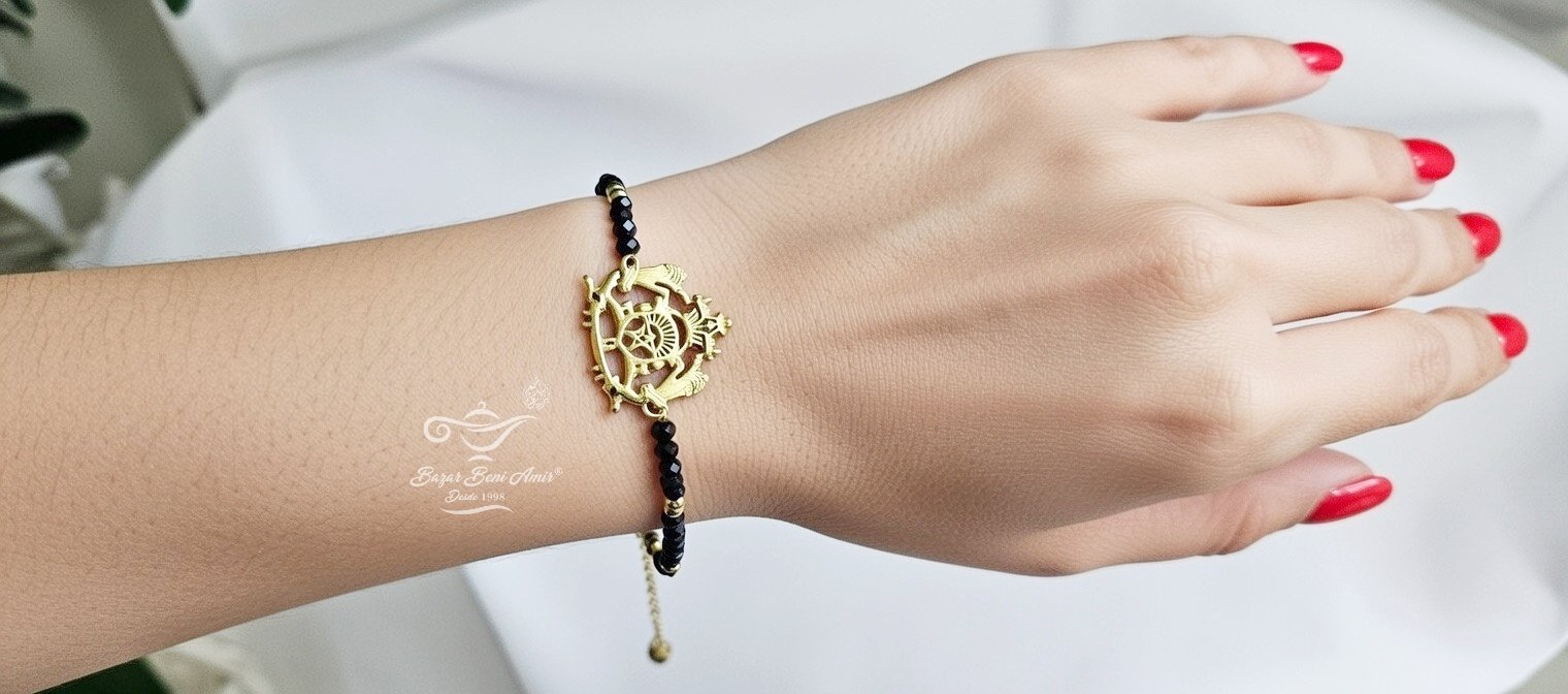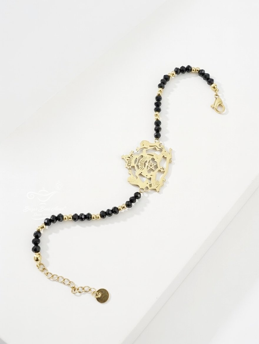 Elegante pulsera artesanal con el escudo nacional de Marruecos en dorado de acero inoxidable.
